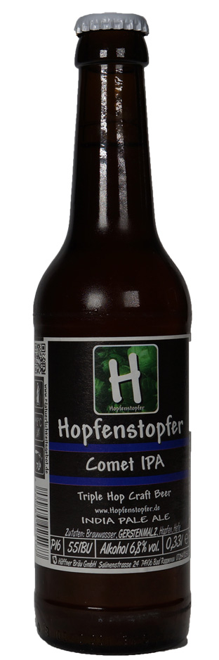 Das Hopfenstopfer Comet IPA ist ausschließlich mit Hallertauer Hopfen gebraut, genauer gesagt Saphir, Taurus und Hallertauer Comet, was ihm wahrscheinlich auch seinen Namen gibt. Der Comet Hopfen hat seine eigene recht würzige, zugleich grasige Note, die dieses IPA von anderen unterscheidet. Die Bittere ist ordentlich und hält auch lange an. Das IPA ist trüb und hat eine gute Schaumstabilität (was bei den edlen Hopfensorten auch zu erwarten ist). Insgesamt ein sehr rundes und empfehlenswertes IPA!
